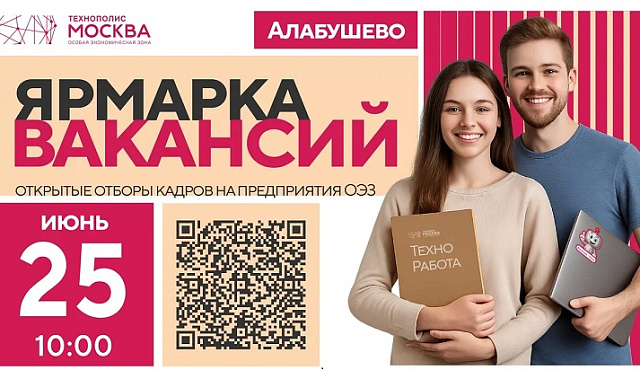 Площадка «Алабушево» особой экономической зоны «Технополис Москва» приглашает всех, кто находится в поиске перспективной работы, на открытые кадровые отборы «Ярмарка вакансий» 25 июня с 10:00 до 13:00.