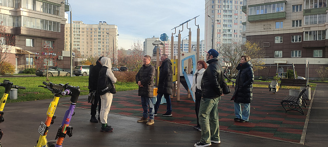 В обходе приняли участие: первый заместитель главы управы по ЖКХ Григорьев Д. В., от Совета депутатов - Емельянов Б.Б., от ГБУ "Жилищник" присутствовали инженера 2 категории Лемк Е.Ю., Фроликова Е. В., Общественные советники, а также активные жители района. В ходе встречи обсуждались вопросы благоустройства. В частности, речь шла о необходимости установки навеса на спортивной площадке у корпуса 2034, а также об обустройстве живой изгороди вокруг этого же корпуса. Кроме того, участники обхода обсудили обустройство дорожки, ведущей к школе 2045.