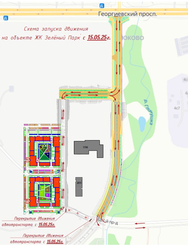 С 15 мая будет открыто движение по улице районного значения в 22 микрорайоне – от Георгиевского проспекта до жилого квартала. Сегодня въезд в микрорайон осуществляется со стороны Кутузовского шоссе по проезду №687. Таким образом, въехать в новый микрорайон можно будет с двух направлений.